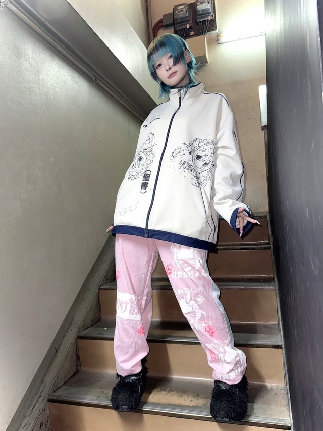 ※こちらは一点物のオリジナルリメイク商品です。 すべておみせでプリントしていますので、プリントのかすれ、ズレ等はあらかじめご了承くださいませ。 モデル身長約156㎝ おジャージ 着丈約81㎝ 身幅約53㎝ 首元から袖先(ラグラン)約79㎝ フリルきゅろっと ウエスト約70〜96㎝ 股上約30㎝ 股下約18㎝ ワタリ約24㎝ れぐうぉま 着丈約54㎝ 身幅約16㎝(ゴムです!) ▽ダメージ以外にも、全体に古着商品特有の使用感があります。実際と若干お色味が異なる場合があります、ご了承お願い致します。 ▽お客様のご都合によるキャンセル、返品、交換は固くお断りしております。