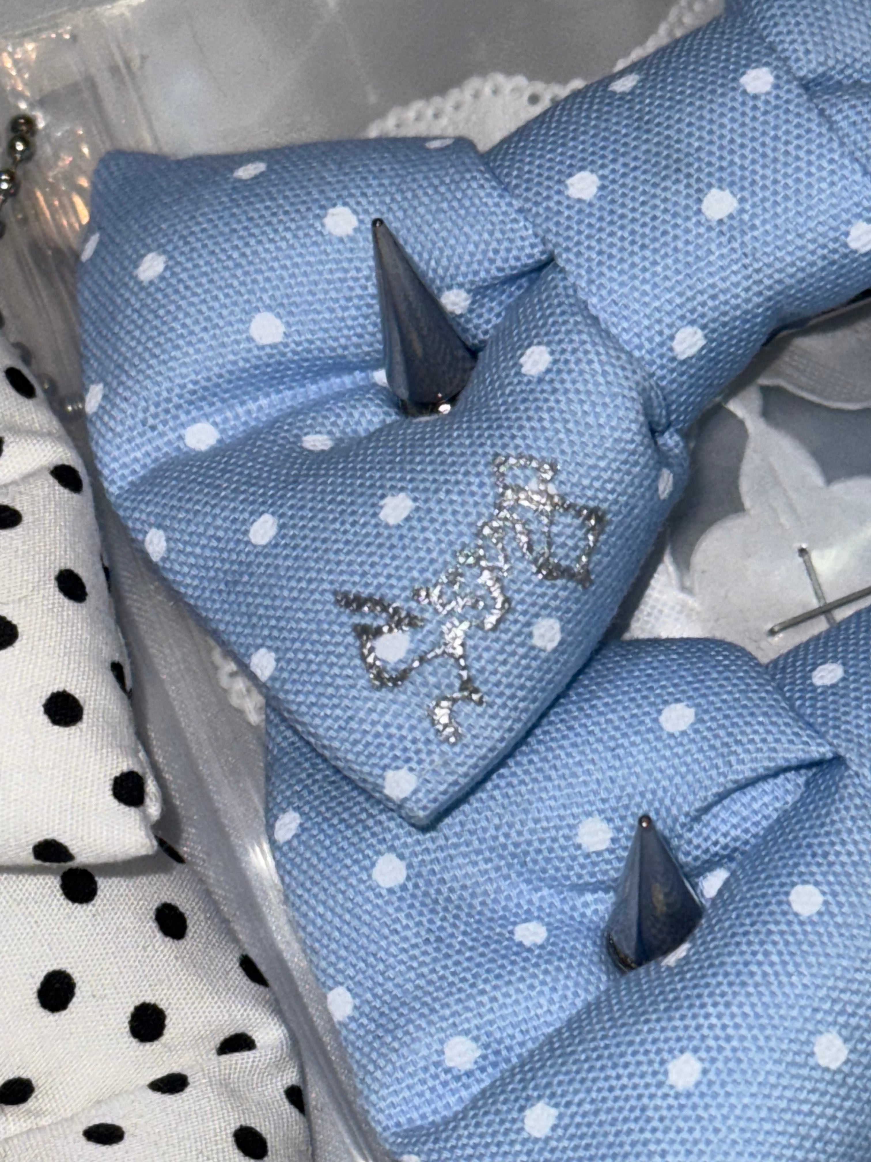 ドット柄の生地、生地屋さんで大変悩み、