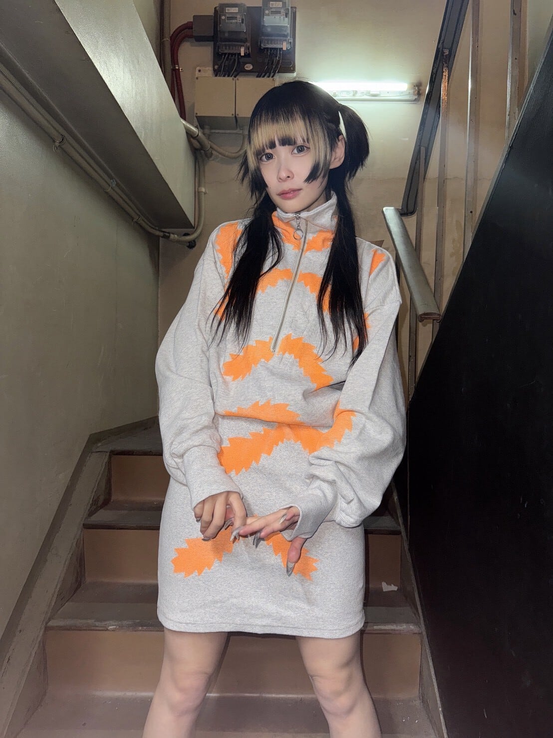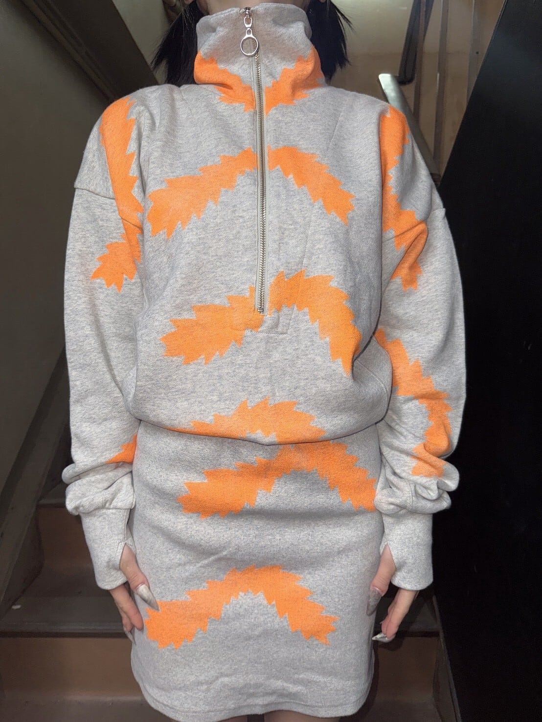 パーフェクトプラン ステンシルジップアップワンピ オレンジ