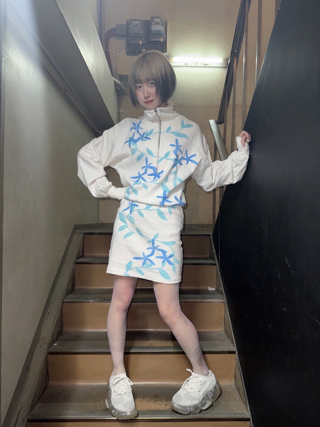 パーフェクトプラン ステンシルジップアップワンピ お花