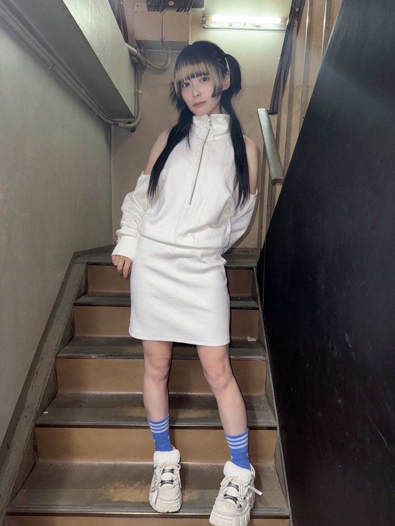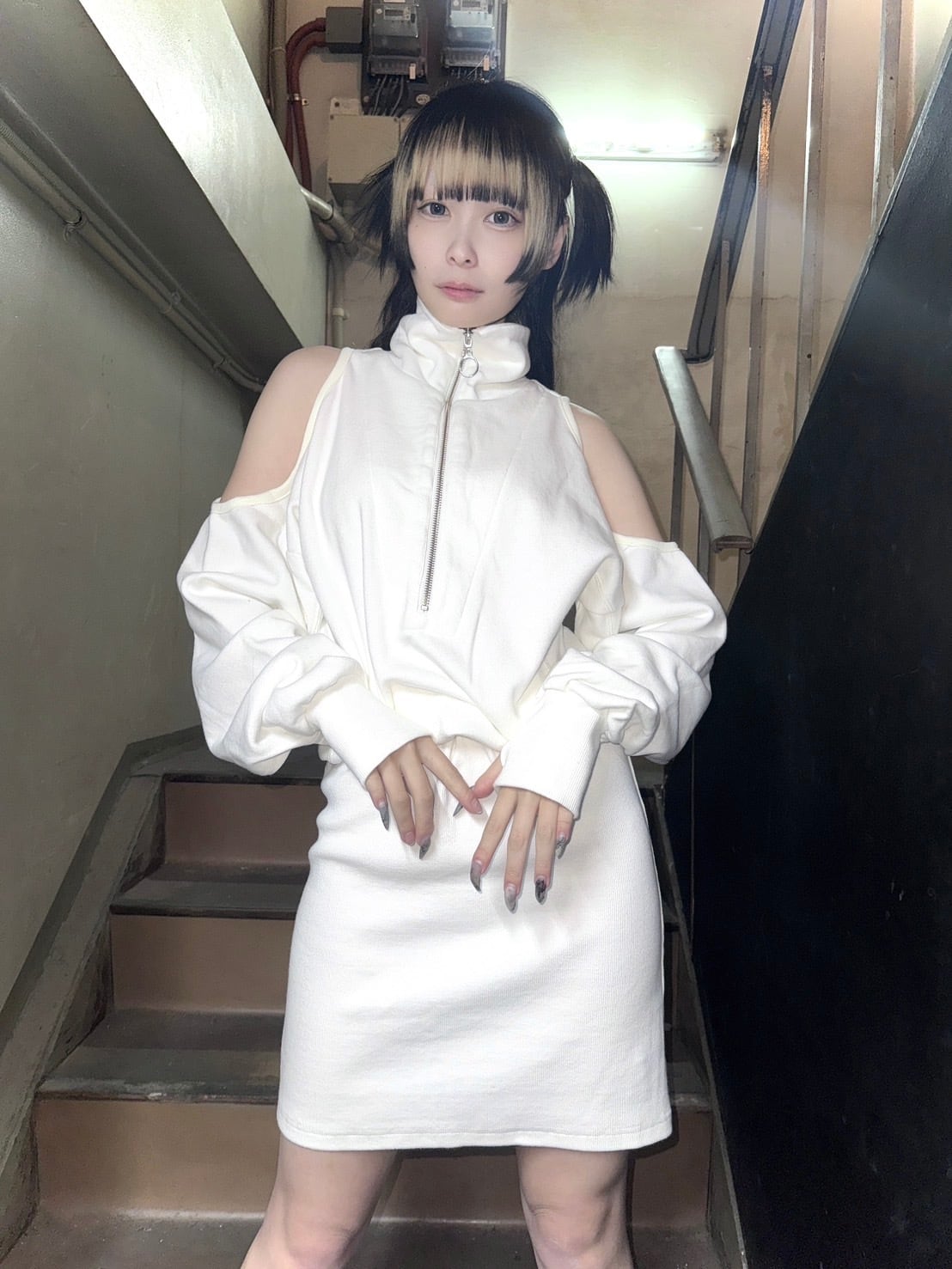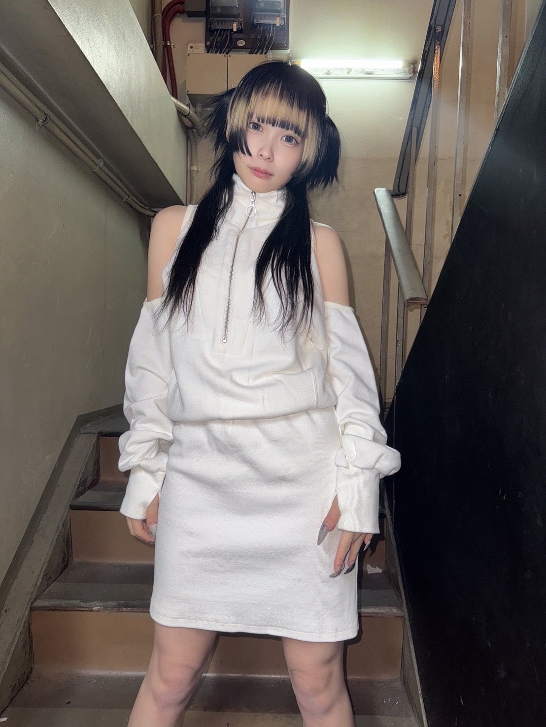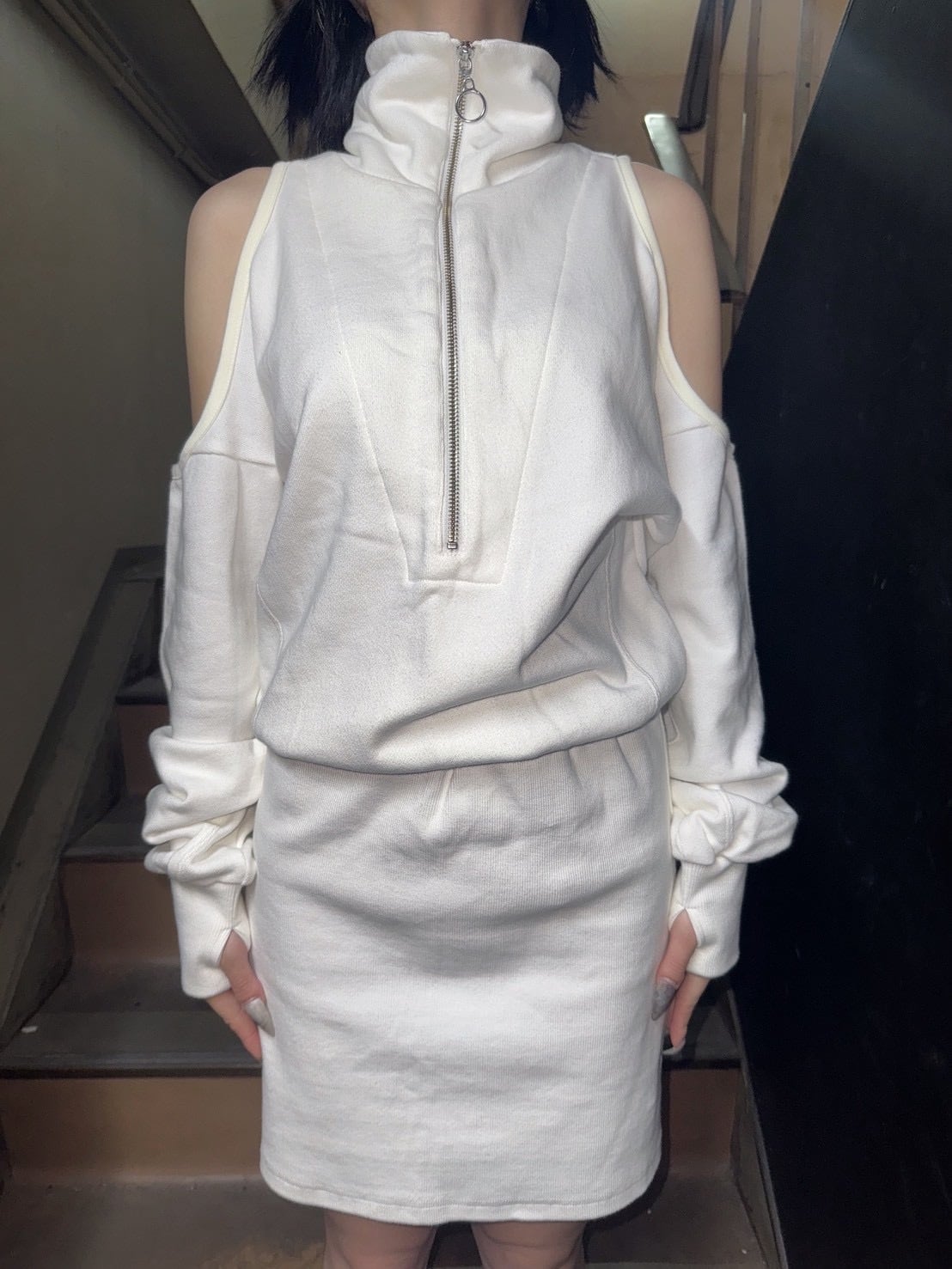パーフェクトプラン 袖あきジップアップワンピ ホワイト