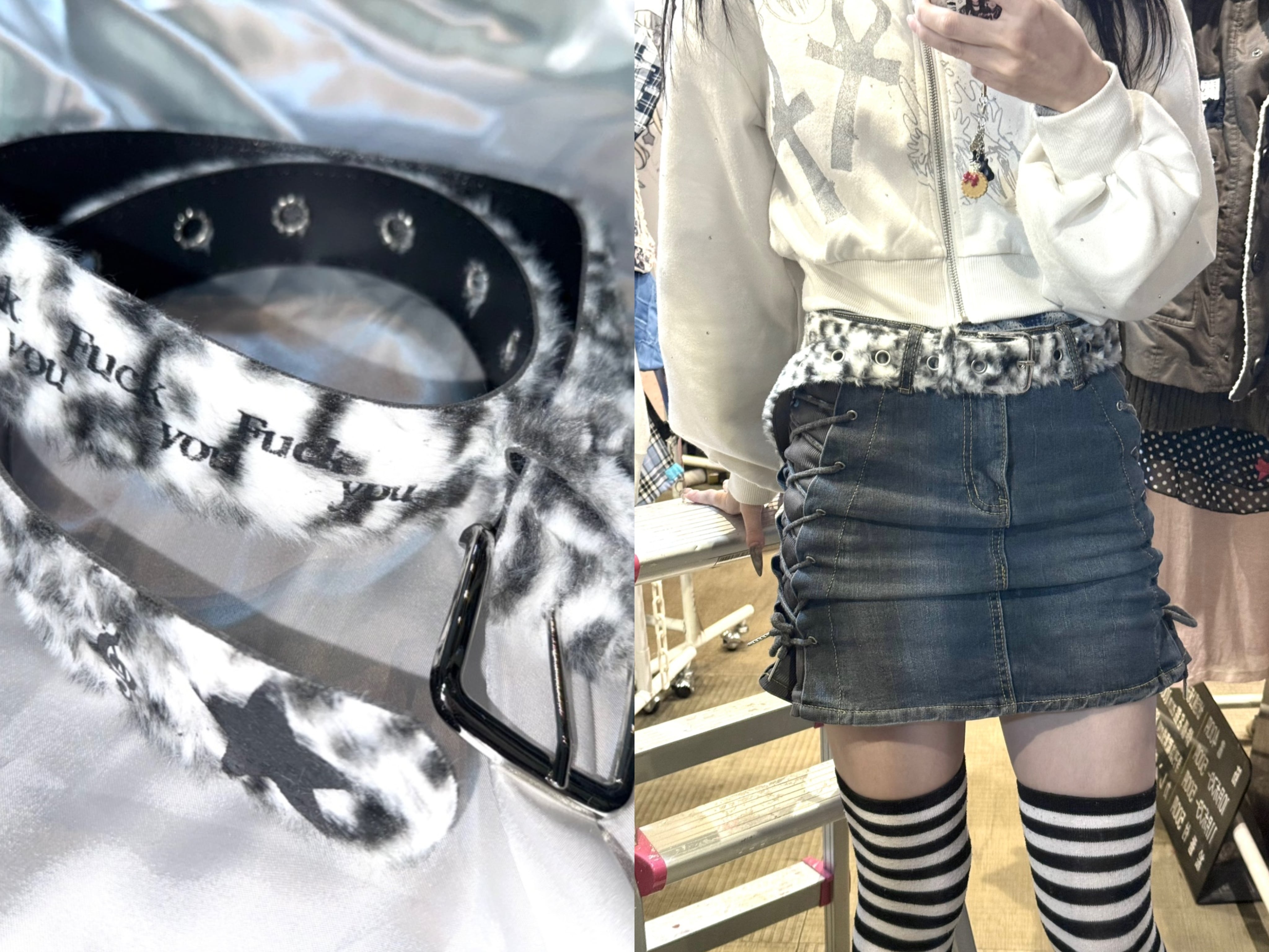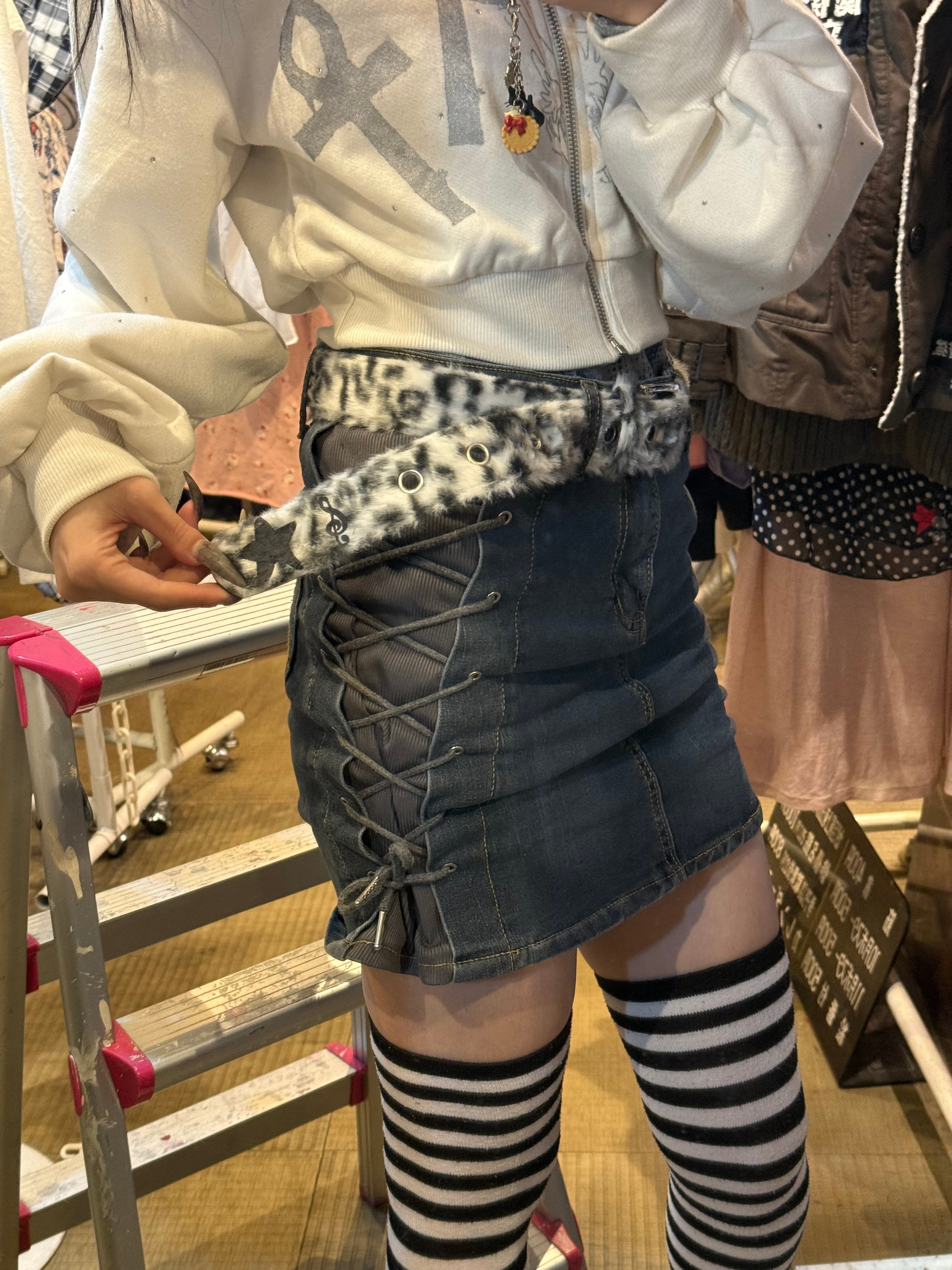 コラージュ ふあふあヒョウ柄ベルト(ほわいと)