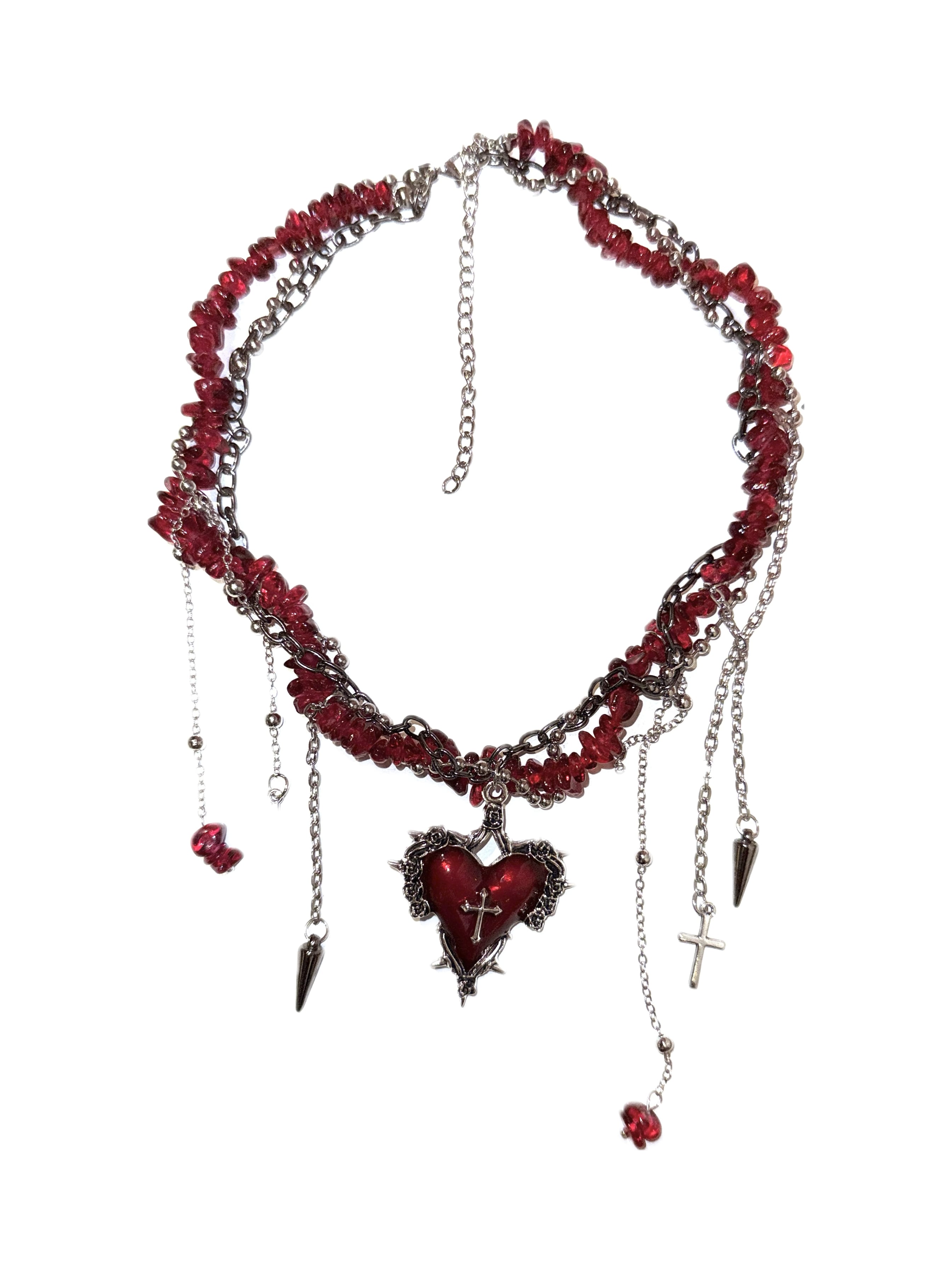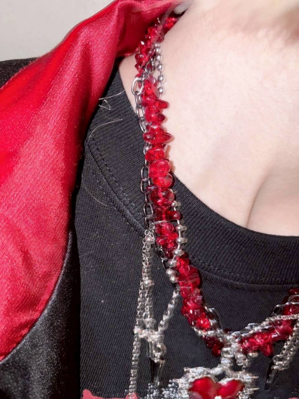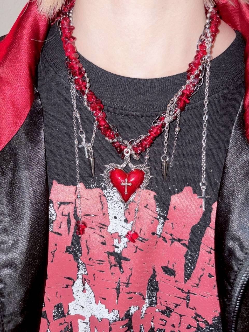 ビーズハートネックレス あか